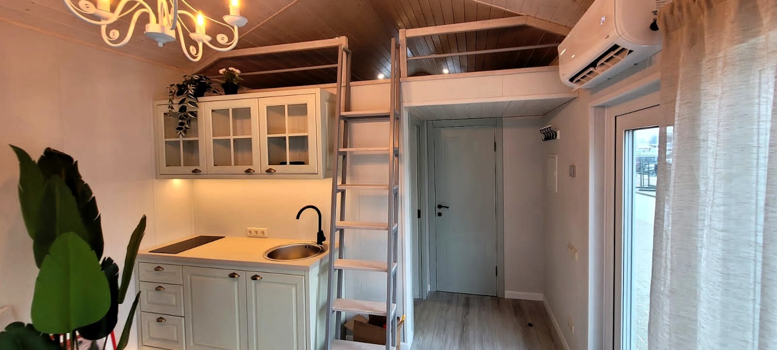 Cenā nav iekļautas virtuves iekārta, mēbeles un trepes uz loftu. Ņemiet vērā, ka papildus jums būs nepieciešams ierīkot ārējo kanalizāciju, pievienot ūdeni un pievadīt elektrību līdz ēkai. Ja nav savu kanalizācijas meistaru un mēbeļnieku, ieteiksim savus sadarbības partnerus.