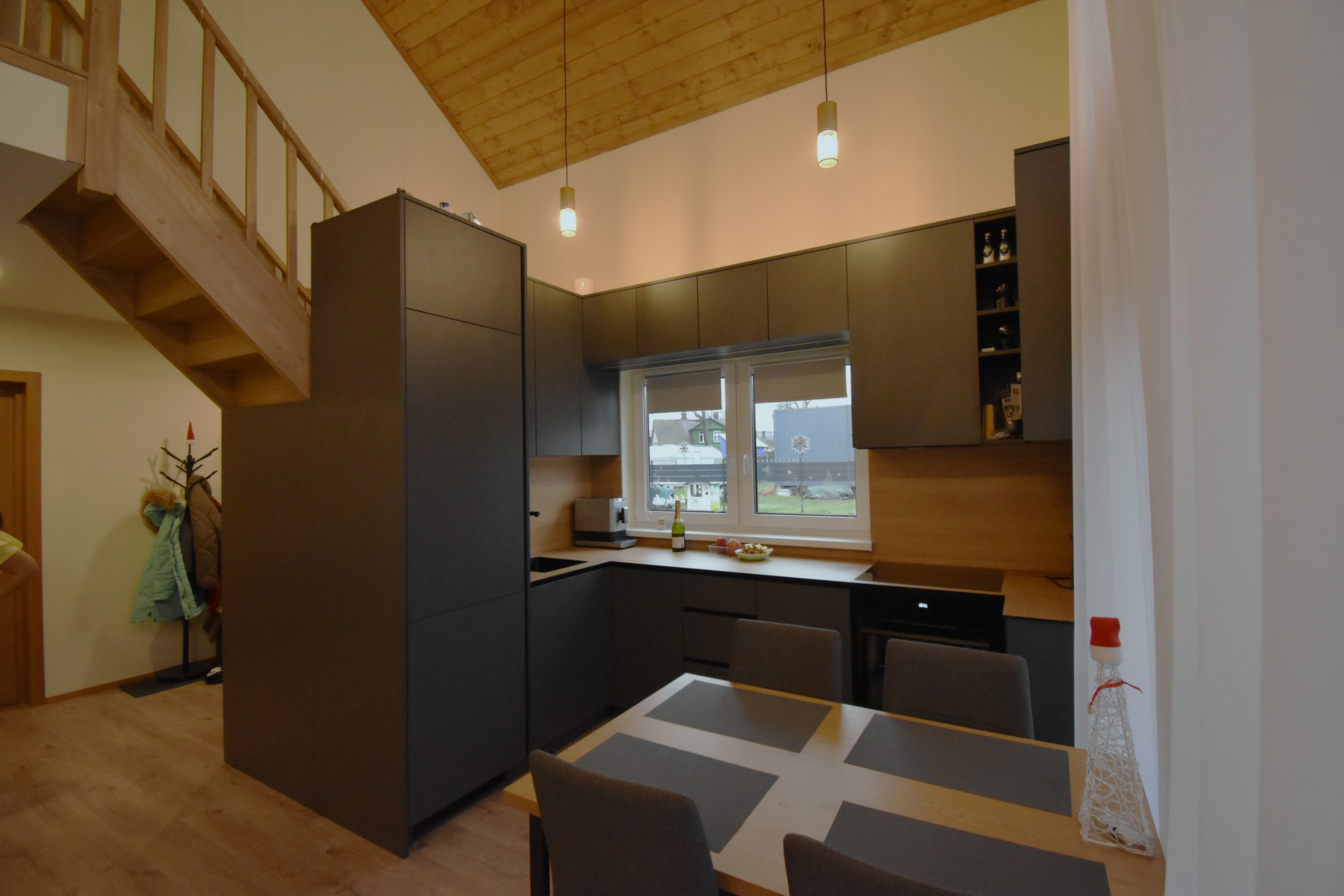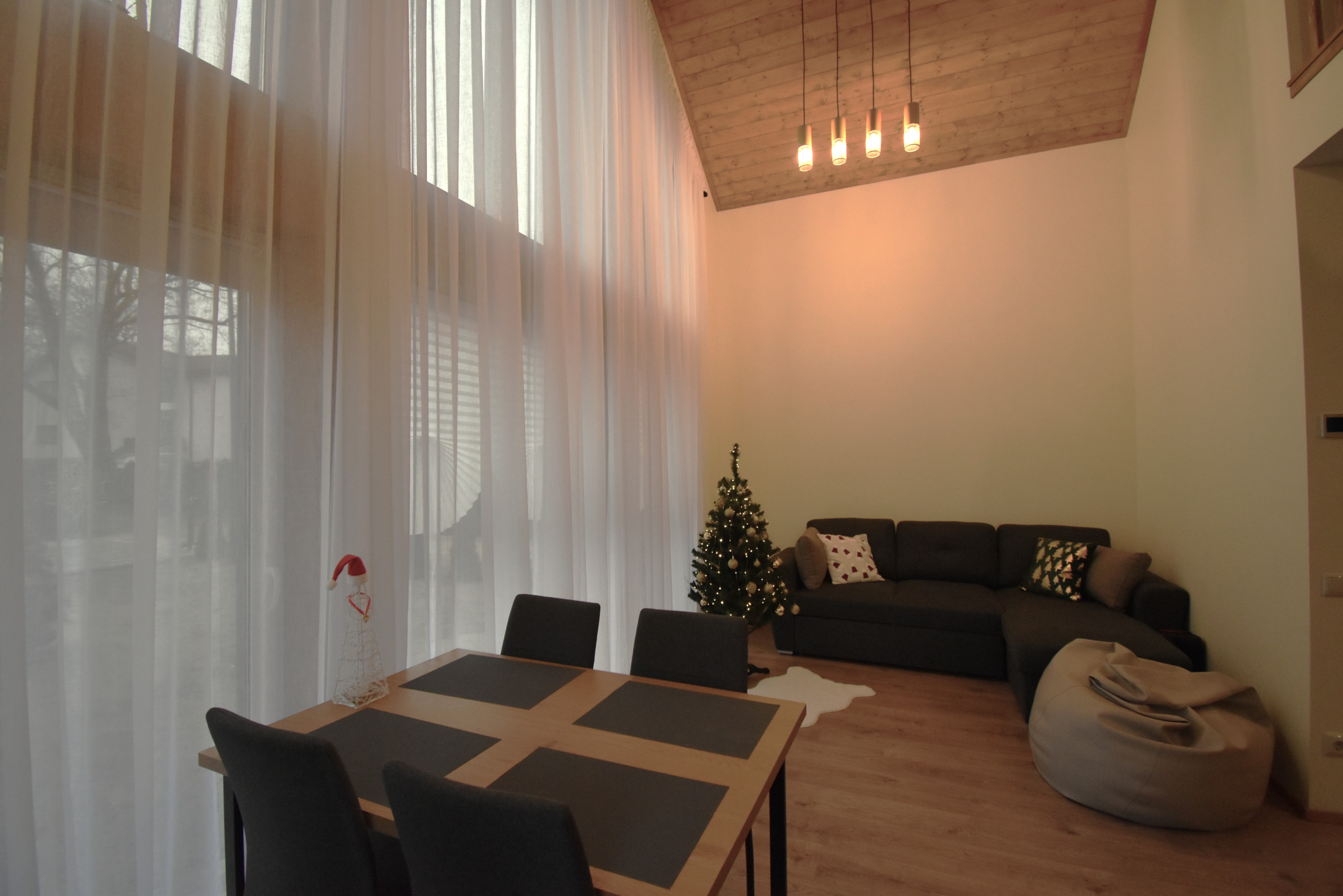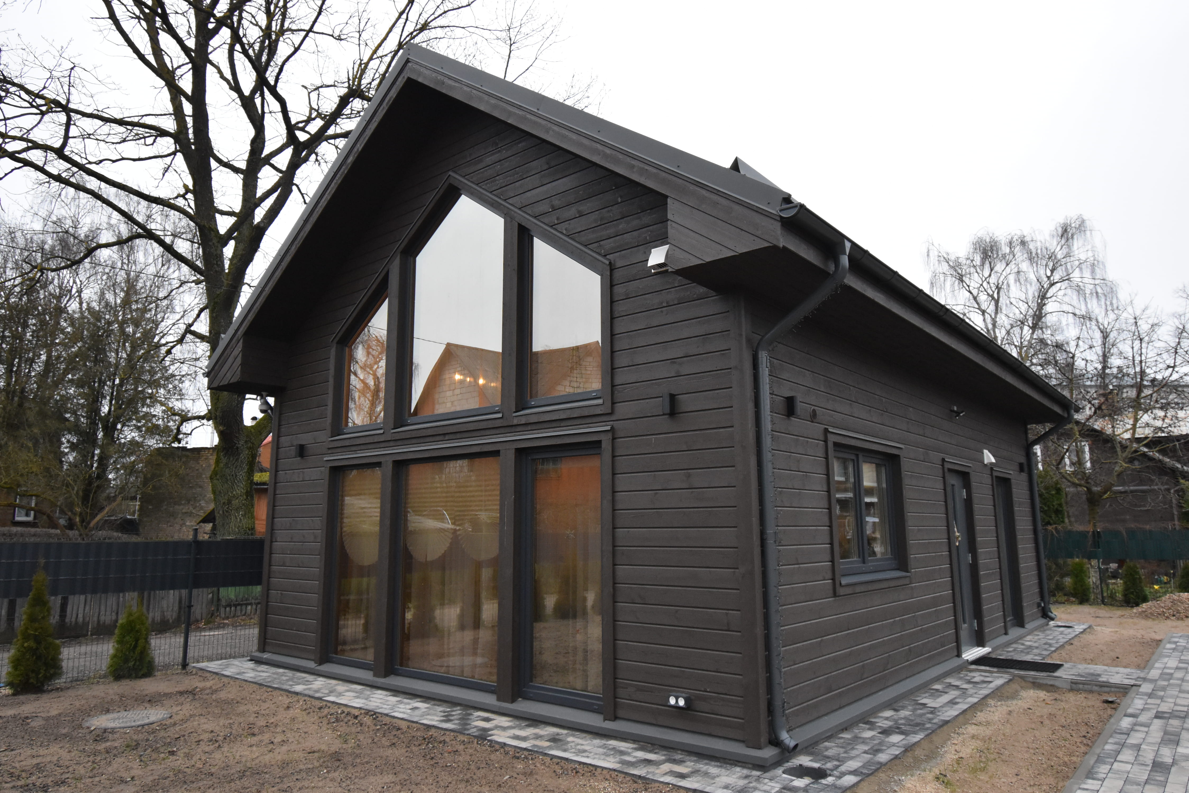 Koka karkasa māja ar apbūves laukumu 60 m², iekšējo platību 49.9 m² + 30 m² apdzīvojamu mansardu, pieejama no € 54 230 (pamatkomplekts, bez PVN).