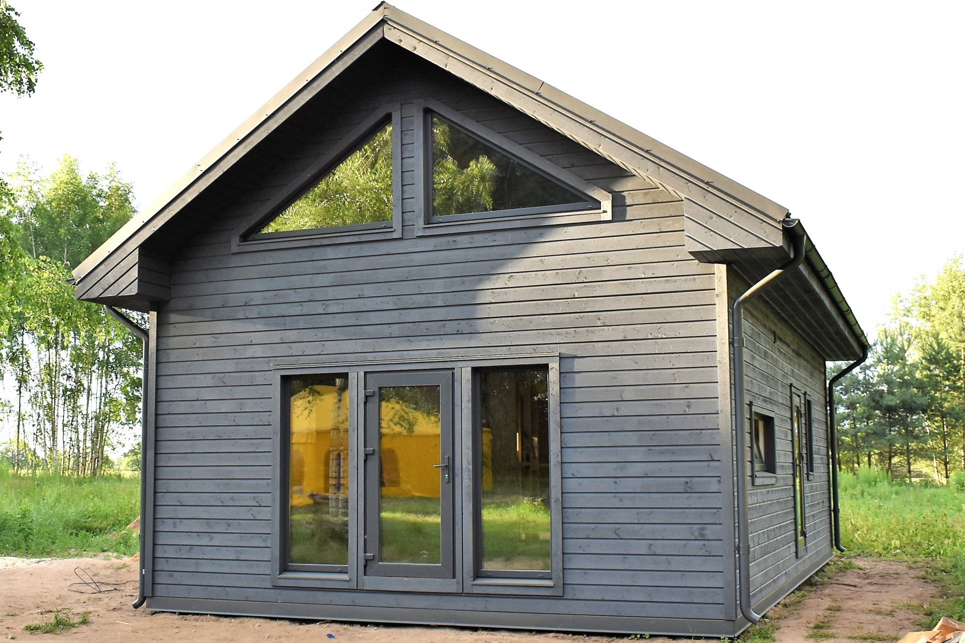 Koka karkasa māja projektēta ņemot vērā ģimenes vajadzības. Plānojumā ir ietvertas 2 guļamistabas, sanitārais mezgls un virtuve apvienojumā ar viesistabu. Paaugstinātais drempelis paplašina gaišo viesistabu un rada mājīgumu.