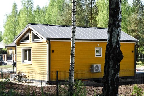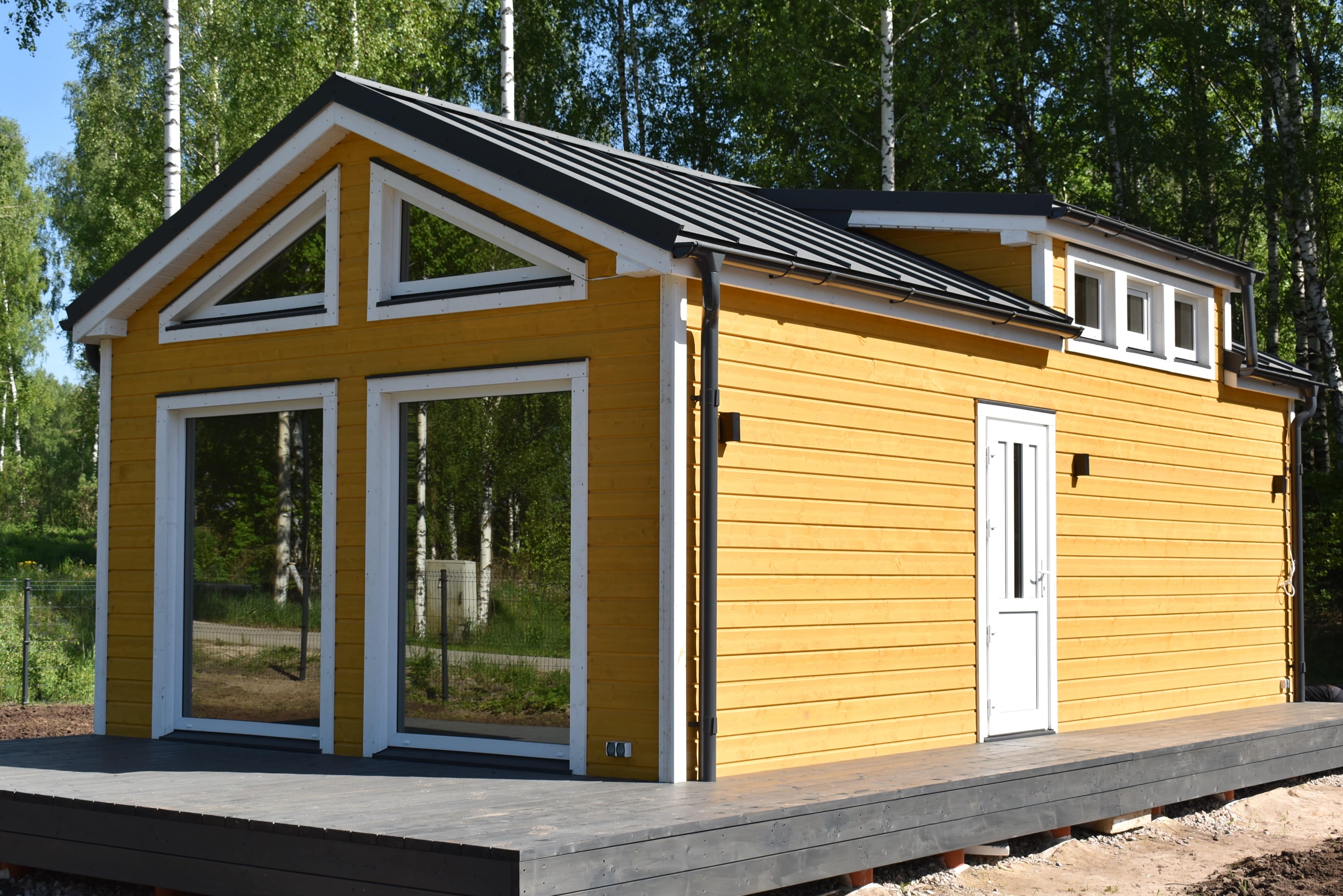 Koka karkasa moduļu māja ar apbūves laukumu 60 m², iekšējo platību 49,9 m² + 30 m² apdzīvojamu mansardstāvu