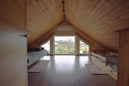 Wooden frame house with construction area 60 m², internal area 49.8 m² + 30 m² habitable attic, available from €49 230 (basic set, excluding VAT).